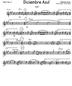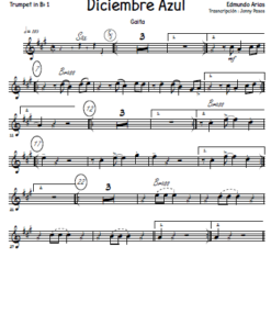 Instrumentos: 2 Saxofones Alto, 2 Saxofones Tenor, 1 Saxofon Baritono, 4 Trompetas en Bb, 4 Trombones, Batería, Guitarra, Piano, Contrabajo, Batería y Congas