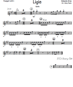 Instrumentos: 2 Saxofones Alto, 2 Saxofones Tenor, 1 Saxofon Baritono, 4 Trompetas en Bb, 4 Trombones, Batería, Guitarra, Piano, Contrabajo, Batería y Congas