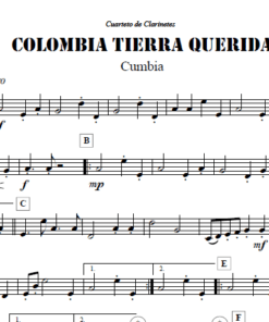 Partituras de Colombia Tierra Querida de Lucho Bermúdez en un arreglo para Cuarteto de Clarinetes.