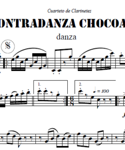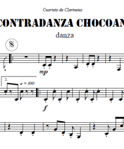 Partituras de Contradanza Chocoana en un arreglo de Jonny Pasos para Cuarteto de Clarinetes.