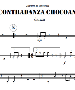 Partituras de Contradanza Chocoana en un arreglo de Jonny Pasos para Cuarteto de Saxofones.