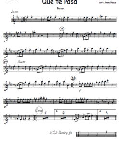 Instrumentos: 2 Saxofones Alto, 2 Saxofones Tenor, 1 Saxofon Baritono, 4 Trompetas en Bb, 4 Trombones, Batería, Guitarra, Piano, Contrabajo, Batería y Congas